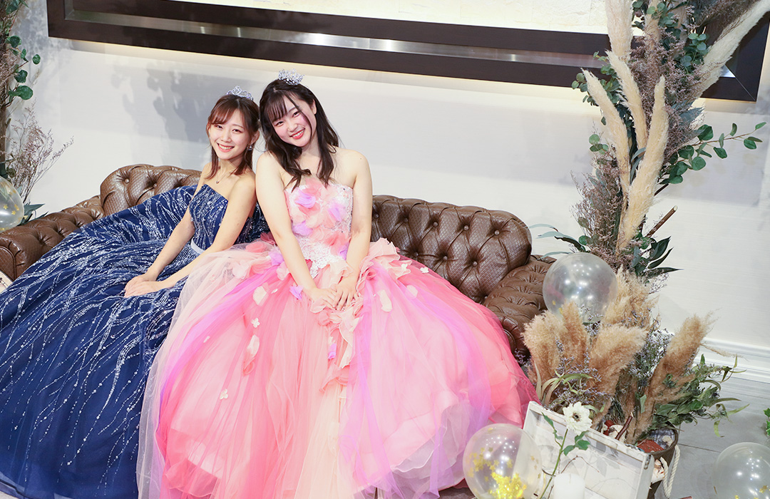 ドレスは5~15号のご用意でございます。3号のドレスもございますが、小さいドレスは数に限りがございます。