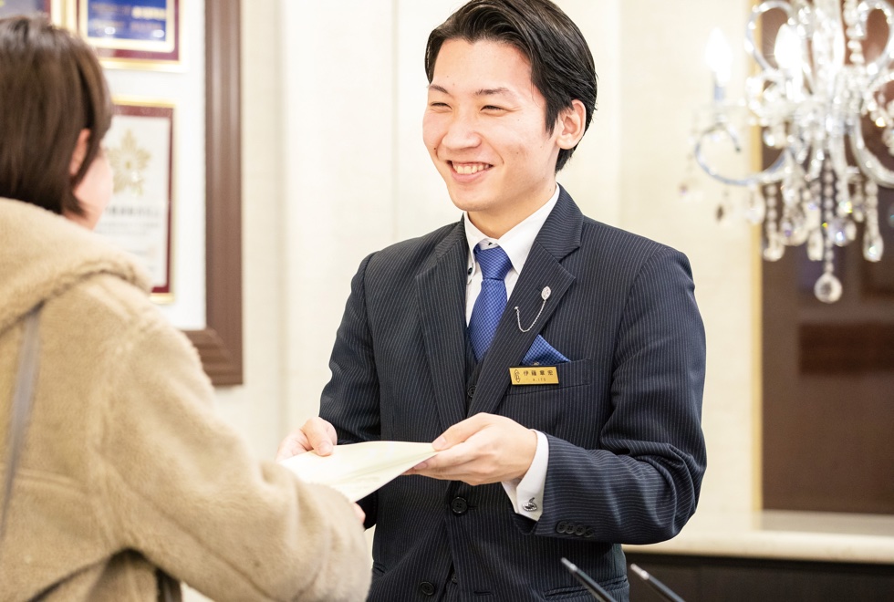 毎日訪れるお客様も違えば、起こる出来事も違うのがホテル業界の特徴の1つです。その中で、その場の状況やお客様一人ひとりにふさわしい接客を目指すことが出来るのが楽しさでもありやりがいだと感じております。